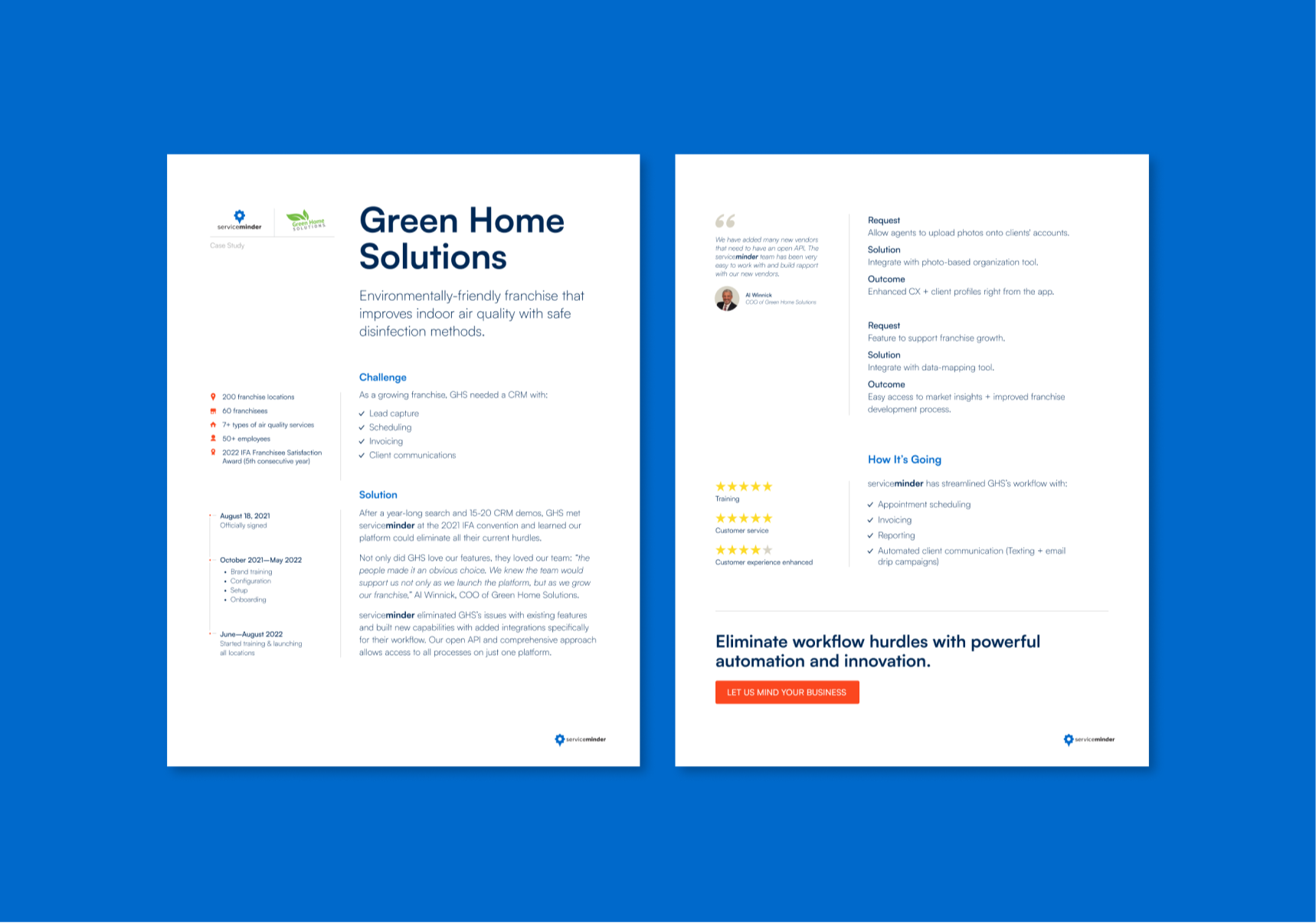 Communicate serviceminder.io’s unique value as an all-in-one platform built exclusively for franchise home services brands—serving both franchisors and franchisees with tailored features